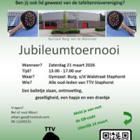 Het 2e Staphorster jeugdteam van G.J. Stegeman Dienstverlening speelde zaterdag uit tegen het 1e team van Dronten. Klaas Jan Vos, Erik Dominé en William Slager zitten stevig in het zadel op de 2e plaats in de poule, om GTC 1 uit Genemuiden nog in te halen zit er waarschijnlijk niet meer in. Klaas Jan en Erik scoorden allebei 3 punten in het enkel. William kreeg één tegenstander op de knieën, de winst in de andere twee partijen liet hij nipt aan z’n neus voorbij gaan. Klaas Jan en Erik gaven hun tegenstanders in het dubbel geen kans. Eindstand 2-8 voor Staphorst 2.